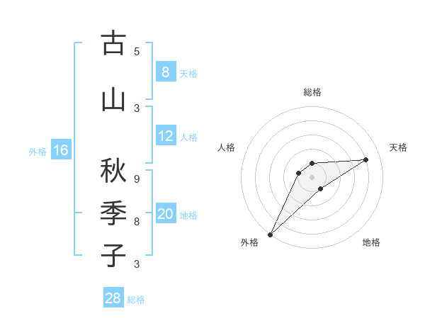 古山 秋季子さんを姓名の画数から五運を鑑定