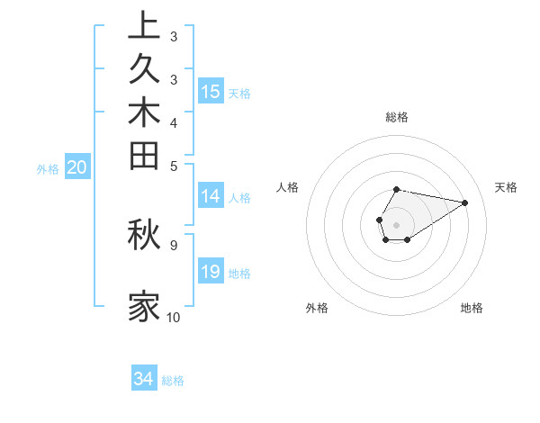 上久木田 秋家さんを姓名の画数から五運を鑑定