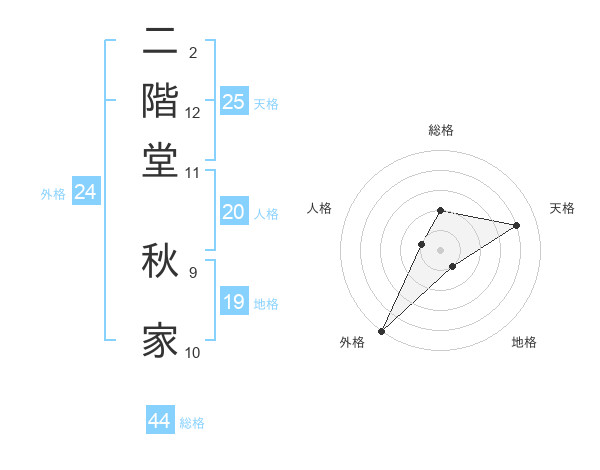 二階堂 秋家さんを姓名の画数から五運を鑑定