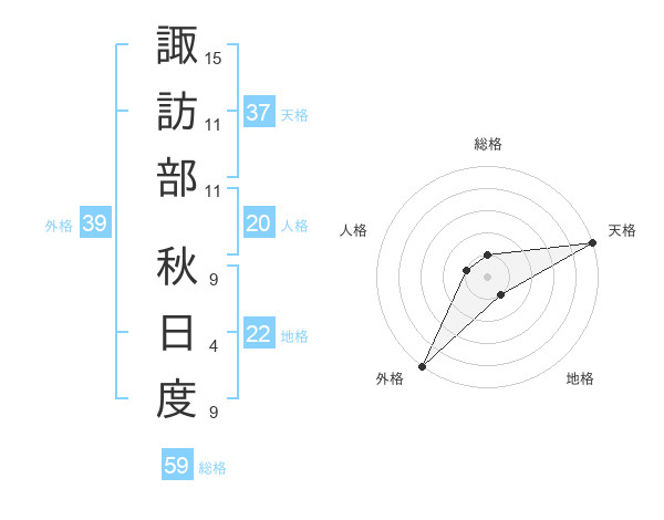 諏訪部 秋日度さんを姓名の画数から五運を鑑定