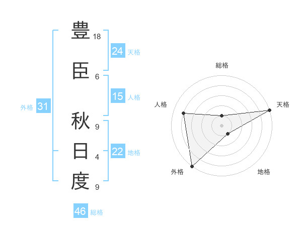 豊臣 秋日度さんを姓名の画数から五運を鑑定