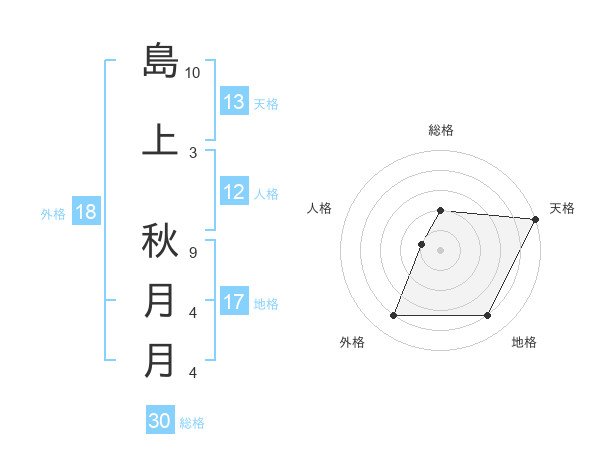 島上 秋月月さんを姓名の画数から五運を鑑定