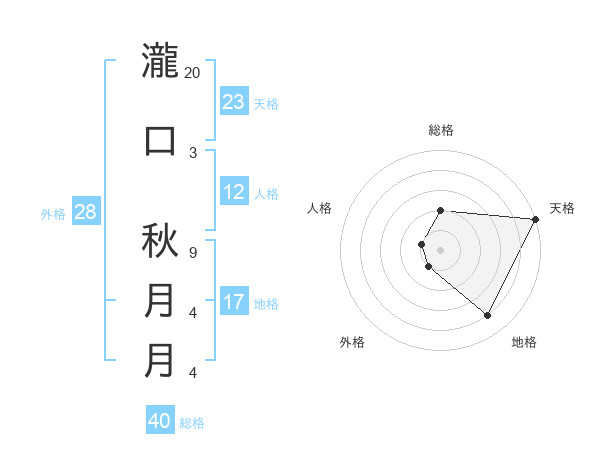 瀧口 秋月月さんを姓名の画数から五運を鑑定