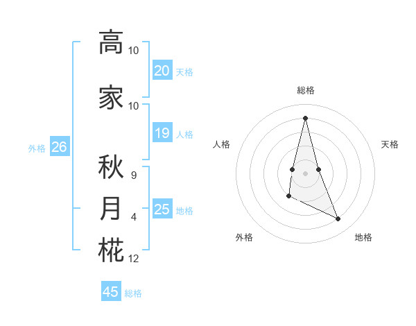高家 秋月椛さんの総格は45画の4点!