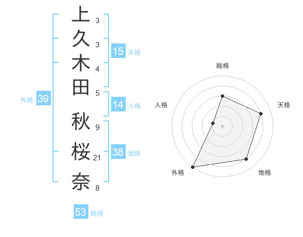 上久木田 秋桜奈さんを姓名の画数から五運を鑑定