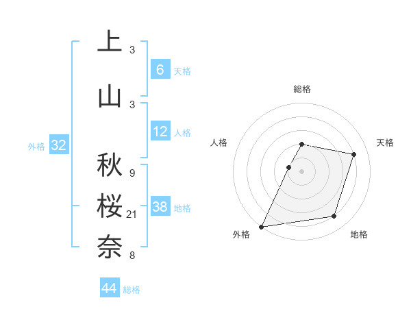 上山 秋桜奈さんを姓名の画数から五運を鑑定