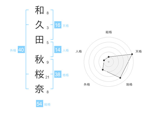和久田 秋桜奈さんを姓名の画数から五運を鑑定