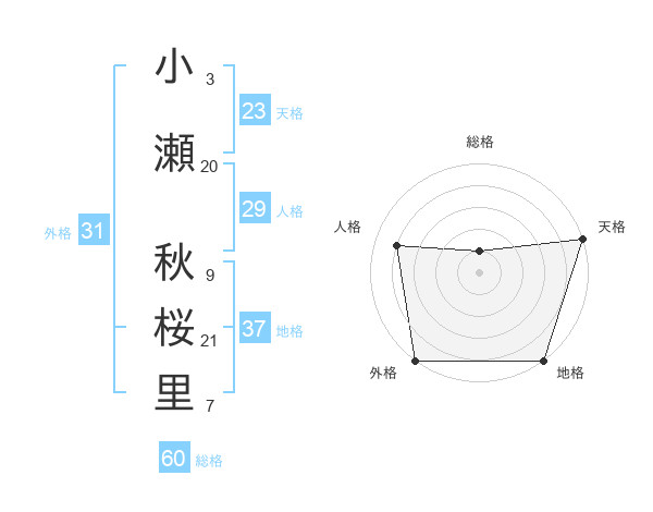 小瀬 秋桜里さんを姓名の画数から五運を鑑定
