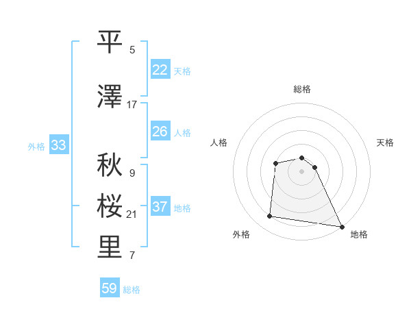 平澤 秋桜里さんの地格は37画の5点!