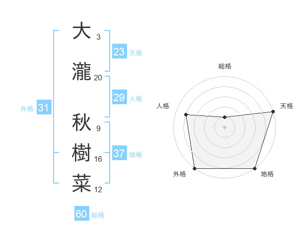 大瀧 秋樹菜さんを姓名の画数から五運を鑑定