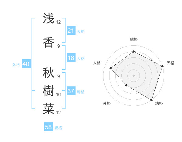 浅香 秋樹菜さんを姓名の画数から五運を鑑定