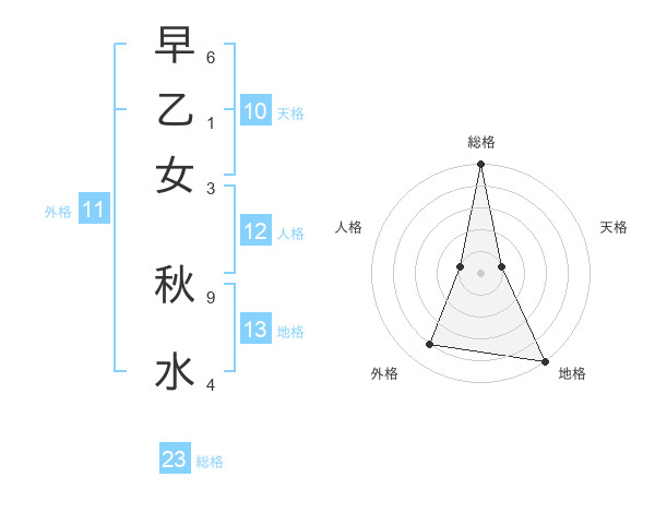 早乙女 秋水さんの総格は23画の5点!