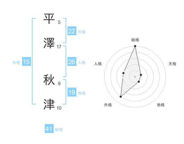 平澤 秋津さんの総格は41画の5点!