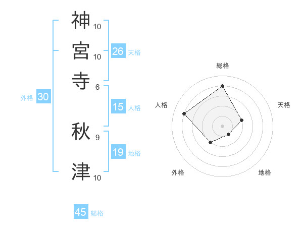 神宮寺 秋津さんの総格は45画の4点