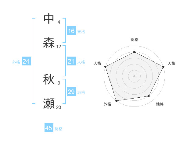 中森 秋瀬さんを姓名の画数から五運を鑑定