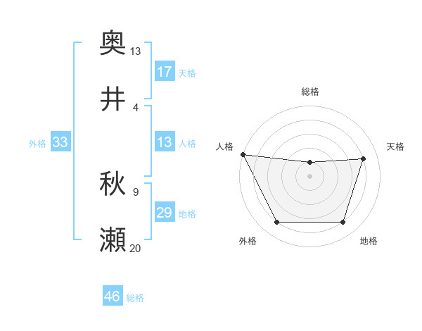 奥井 秋瀬さんを姓名の画数から五運を鑑定