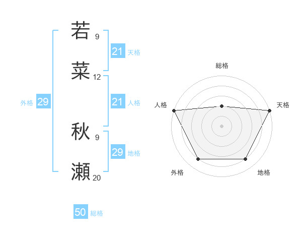 若菜 秋瀬さんを姓名の画数から五運を鑑定