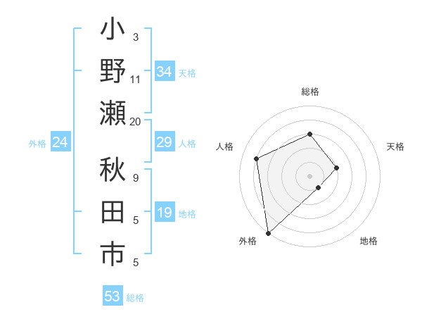 小野瀬 秋田市さんを姓名の画数から五運を鑑定