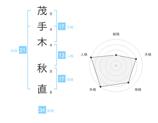 茂手木 秋直さんを姓名の画数から五運を鑑定
