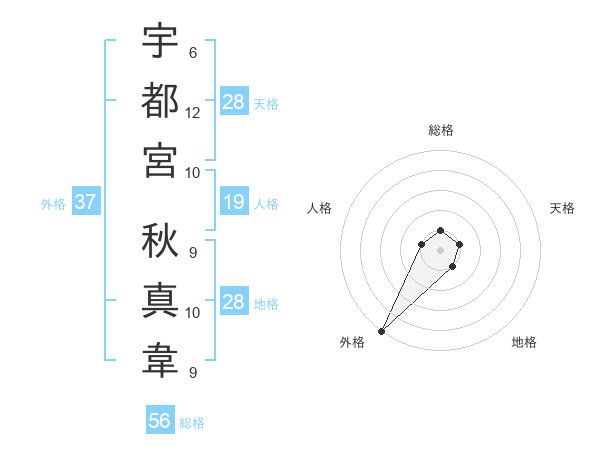 宇都宮 秋真韋さんの外格は37画の5点!
