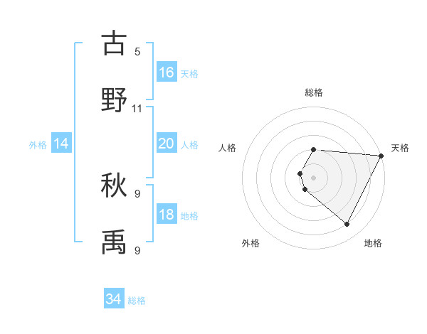 古野 秋禹さんを姓名の画数から五運を鑑定