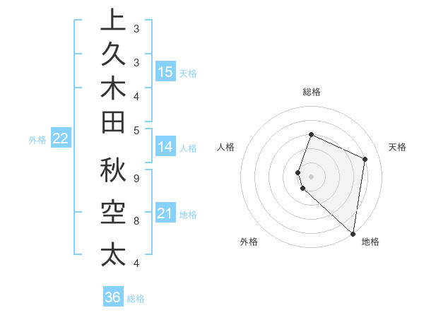 上久木田 秋空太さんを姓名の画数から五運を鑑定