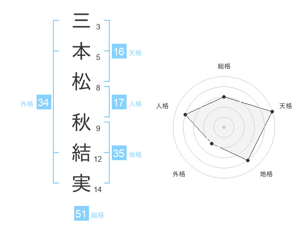 三本松 秋結実さんを姓名の画数から五運を鑑定