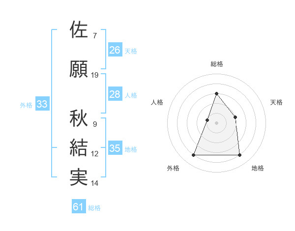 佐願 秋結実さんの総格は61画の3点!