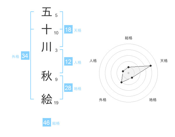 五十川 秋絵さんの総格は46画の1点!