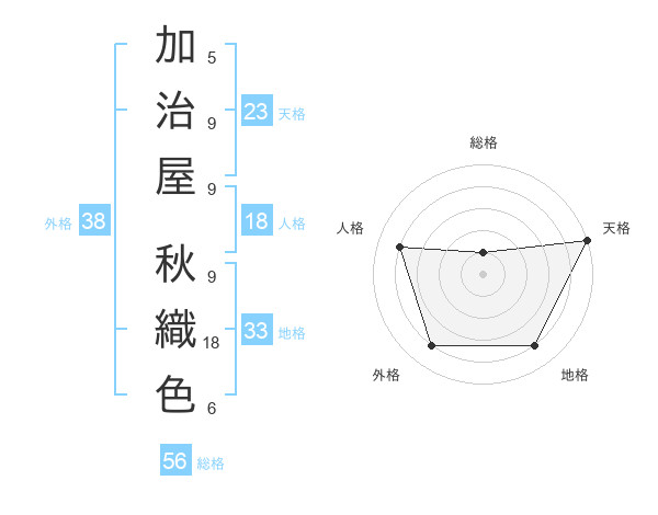 加治屋 秋織色さんを姓名の画数から五運を鑑定