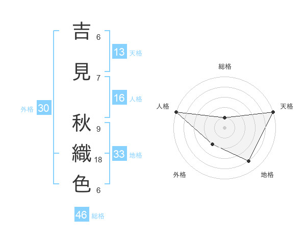 吉見 秋織色さんを姓名の画数から五運を鑑定