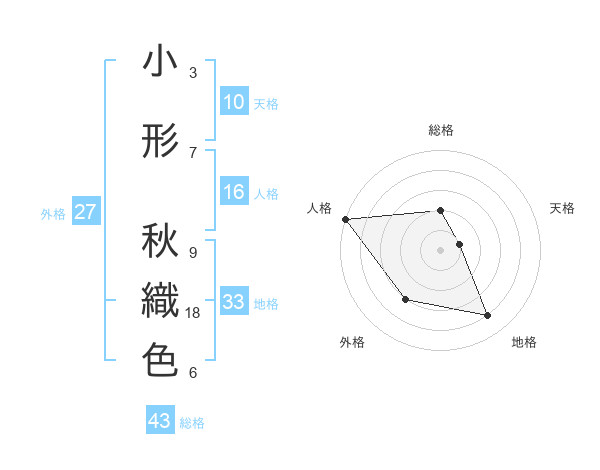 小形 秋織色さんの地格は33画の4点!