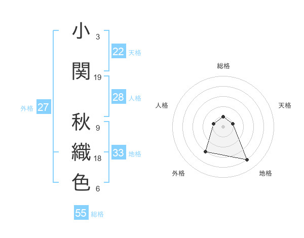 小関 秋織色さんを姓名の画数から五運を鑑定