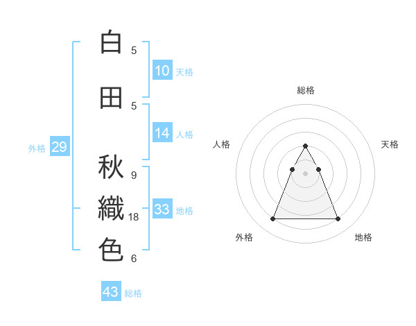 白田 秋織色さんを姓名の画数から五運を鑑定