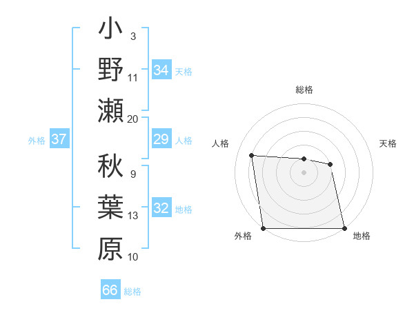 小野瀬 秋葉原さんを姓名の画数から五運を鑑定