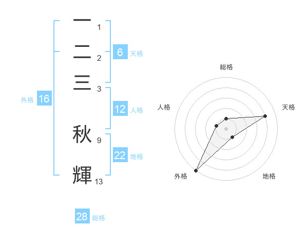 一二三 秋輝さんを姓名の画数から五運を鑑定