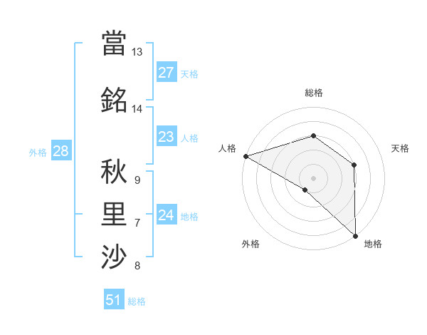 當銘 秋里沙さんを姓名の画数から五運を鑑定