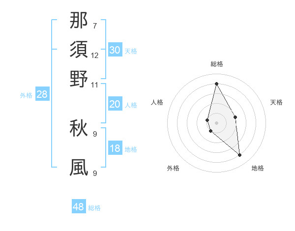那須野 秋風さんの総格は48画の4点!