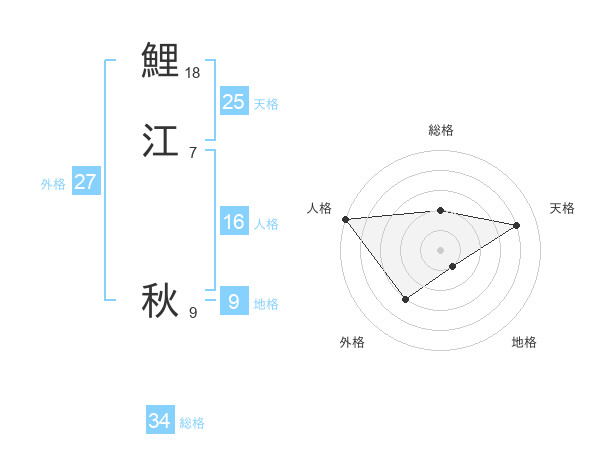 鯉江 秋さんの総格は34画の2点!