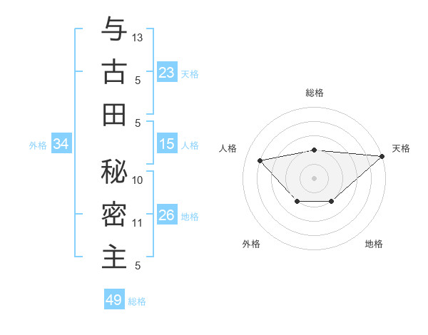与古田 秘密主さんを姓名の画数から五運を鑑定