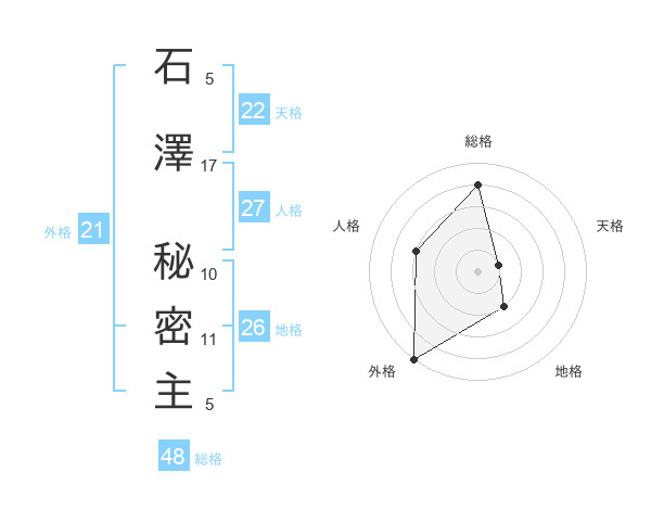 石澤 秘密主さんを姓名の画数から五運を鑑定