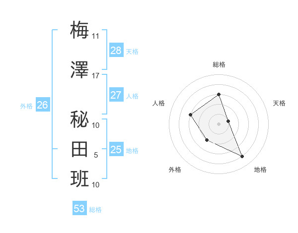 梅澤 秘田班さんを姓名の画数から五運を鑑定