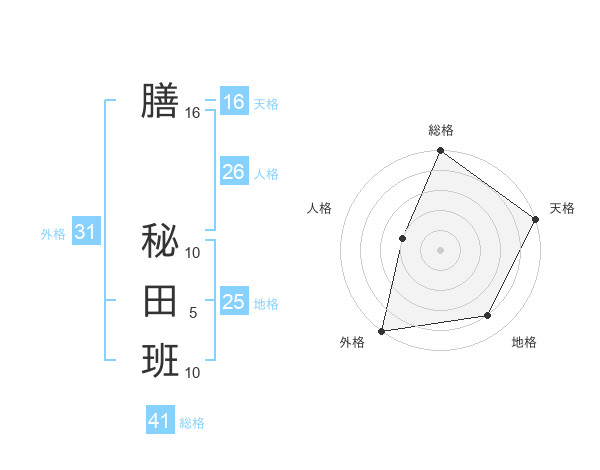 膳 秘田班さんの外格は31画の5点!