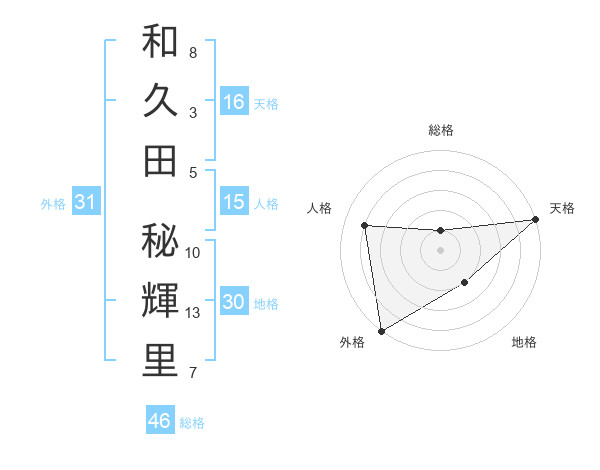 和久田 秘輝里さんを姓名の画数から五運を鑑定