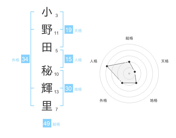 小野田 秘輝里さんの総格は49画の2点!