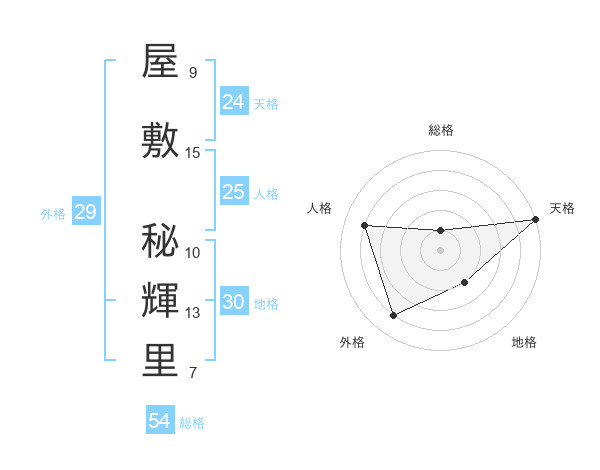 屋敷 秘輝里さんの総格は54画の1点!