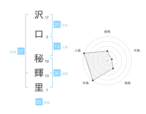 沢口 秘輝里さんの外格は37画の5点!