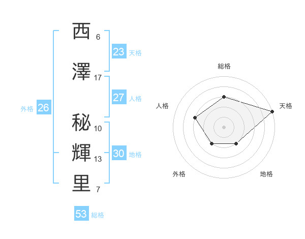 西澤 秘輝里さんを姓名の画数から五運を鑑定