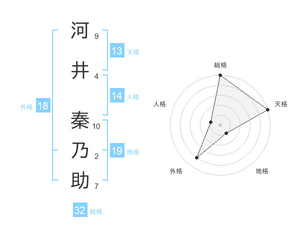 河井 秦乃助さんを姓名の画数から五運を鑑定