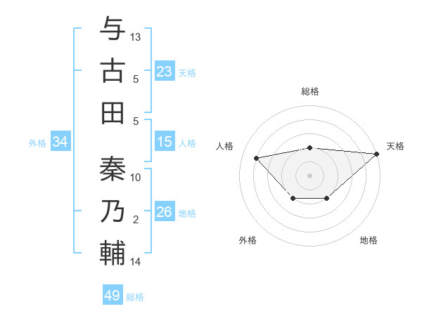 与古田 秦乃輔さんを姓名の画数から五運を鑑定